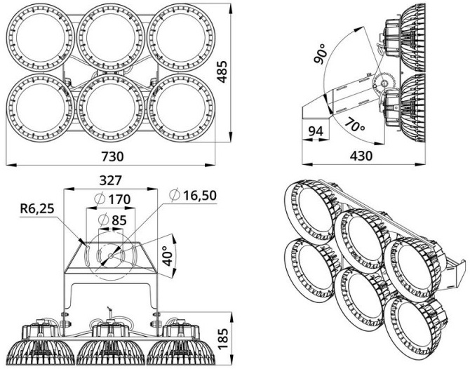 Внешний вид, габариты, световой поток светильника могут меняться в зависимости от оптики, цветовой температуры или CRI. Точные данные см. в паспорте на светильник.