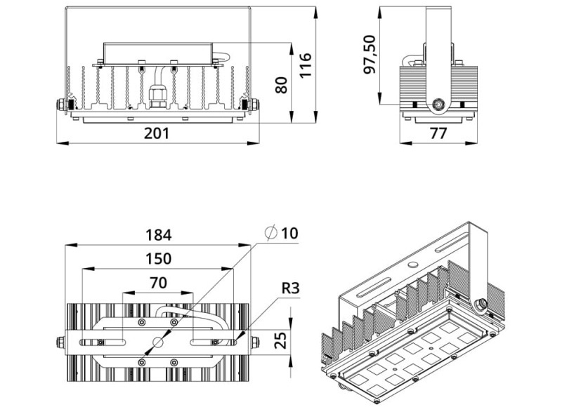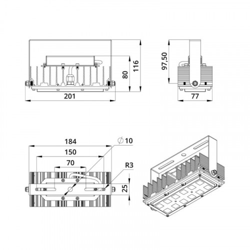 Светодиодный LED прожектор Люмьер ДО-ПЛК-033 предназначен для освещения промышленных объектов, складов и логистических комплексов, портов и других больших территорий, спортивных сооружений, футбольных полей, торговых помещений, выставочных павильонов, улиц, парков, площадей, открытых парковок а также любых открытых пространств. Светодиодный LED прожектор разработан для замены ламповых светильников ЛО-2х58, ЛО-2х65, НО-500.
