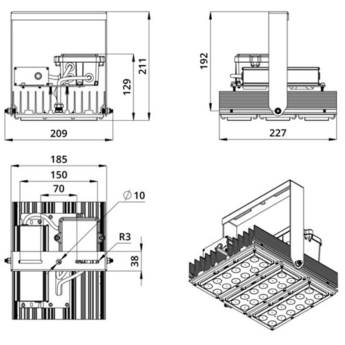 Светодиодный LED прожектор Люмьер ДО-ПЛК-080 предназначен для освещения промышленных объектов, складов и логистических комплексов, портов и других больших территорий, спортивных сооружений, футбольных полей, торговых помещений, выставочных павильонов, улиц, парков, площадей, открытых парковок а также любых открытых пространств. Светодиодный LED прожектор разработан для замены ламповых светильников РО-400, ГО-250.