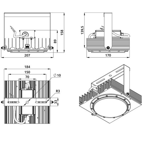 Внешний вид, габариты, световой поток светильника могут меняться в зависимости от оптики, цветовой температуры или CRI. Точные данные см. в паспорте на светильник.