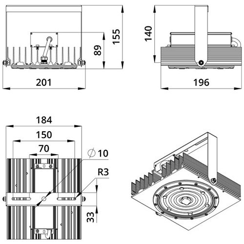 Внешний вид, габариты, световой поток светильника могут меняться в зависимости от оптики, цветовой температуры или CRI. Точные данные см. в паспорте на светильник.