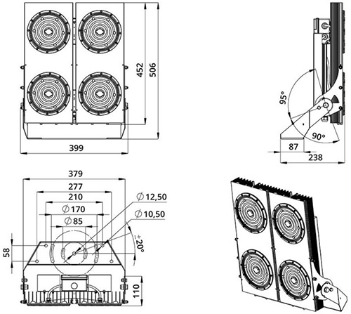 | Общий световой поток светодиодного модуля (2) | 114 750 Лм |