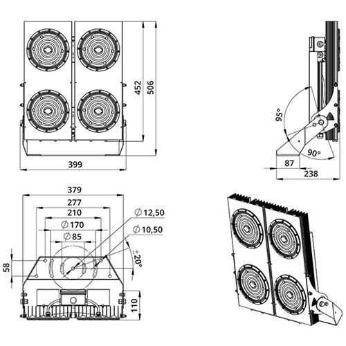 Внешний вид, габариты, световой поток светильника могут меняться в зависимости от оптики, цветовой температуры или CRI. Точные данные см. в паспорте на светильник.