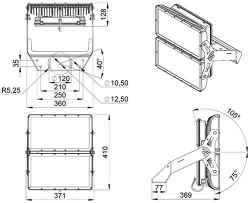 Габаритный чертёж прожектора | ||