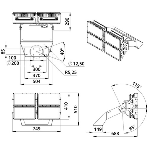 Габаритный чертёж прожектора | ||