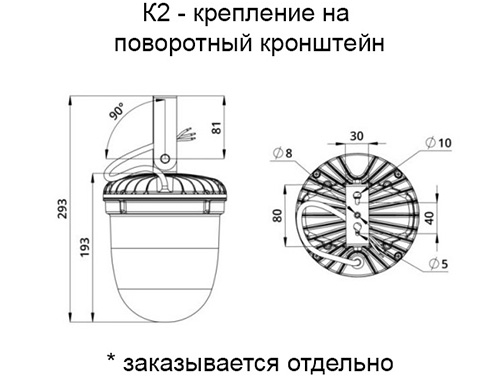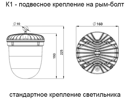 | Крепление светильника | Подвесное (рым-болт) / Поворотный кронштейн (лира) |