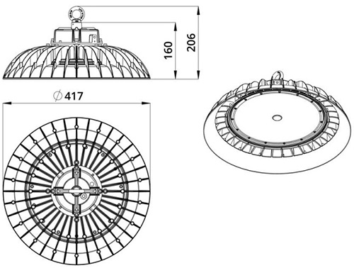 Промышленный подвесной потолочный светодиодный LED светильник Люмьер ДСП-160, мощность 160 Вт, разработан для освещения производственных помещений, цехов, промышленных площадок, складов и спортивных объектов. Конструкция светильника обеспечивает максимальную надежность работы даже в самых сложных условиях эксплуатации. Светильник выполнен в популярном форм-факторе "Колокол" (Low-bay, High-bay) и имеет подвесное крепление. Светильник предназначен для замены устаревших ламповых светильников типа РСП-1000, ЖСП-400.
